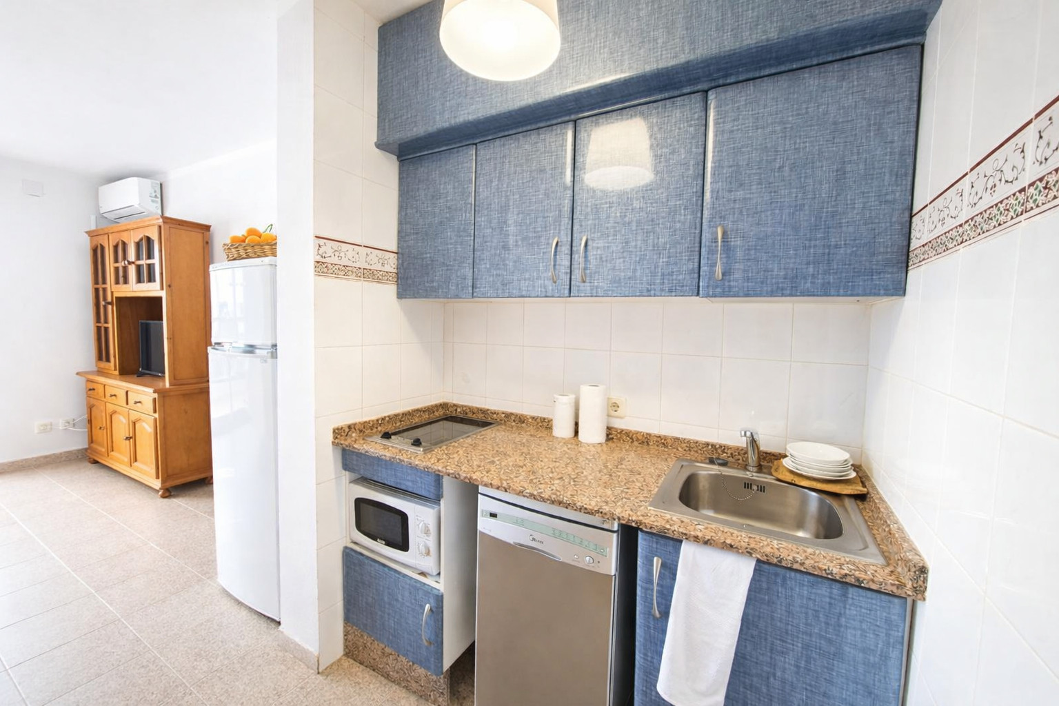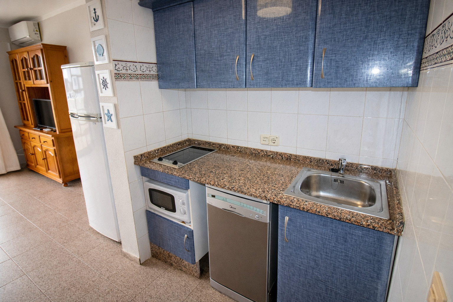 La cocina americana, está equipada con nevera, microondas, horno, congelador, lavadora, lavavajillas, vajilla/cubertería, utensilios/cocina, cafetera y tostadora.