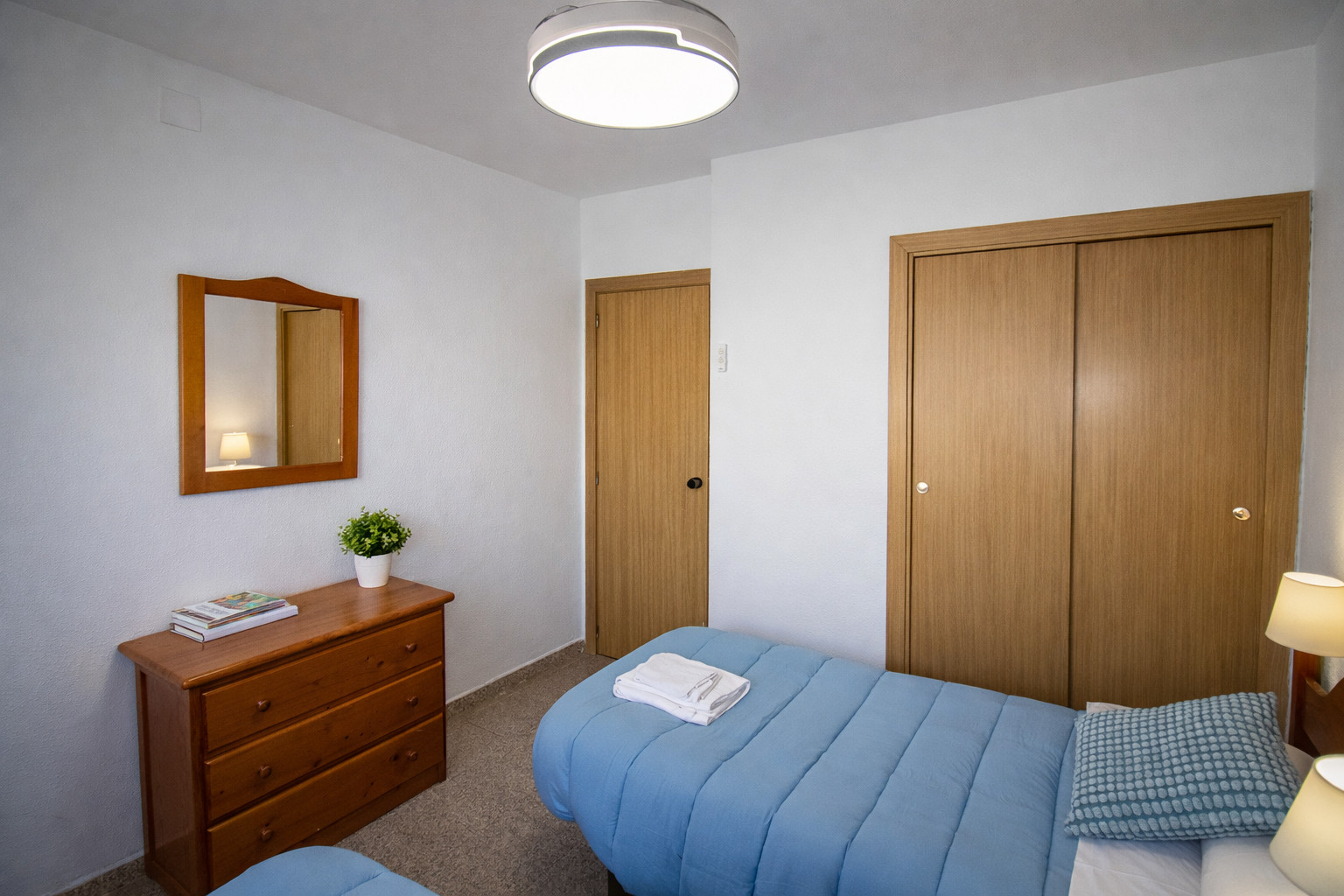 El alojamiento, de 55 metros cuadrados, dispone de 2 dormitorios. El primero, con una cama de matrimonio con un colchón nuevo (2023). El segundo, con una litera. En el sofá-cama cabe una persona.