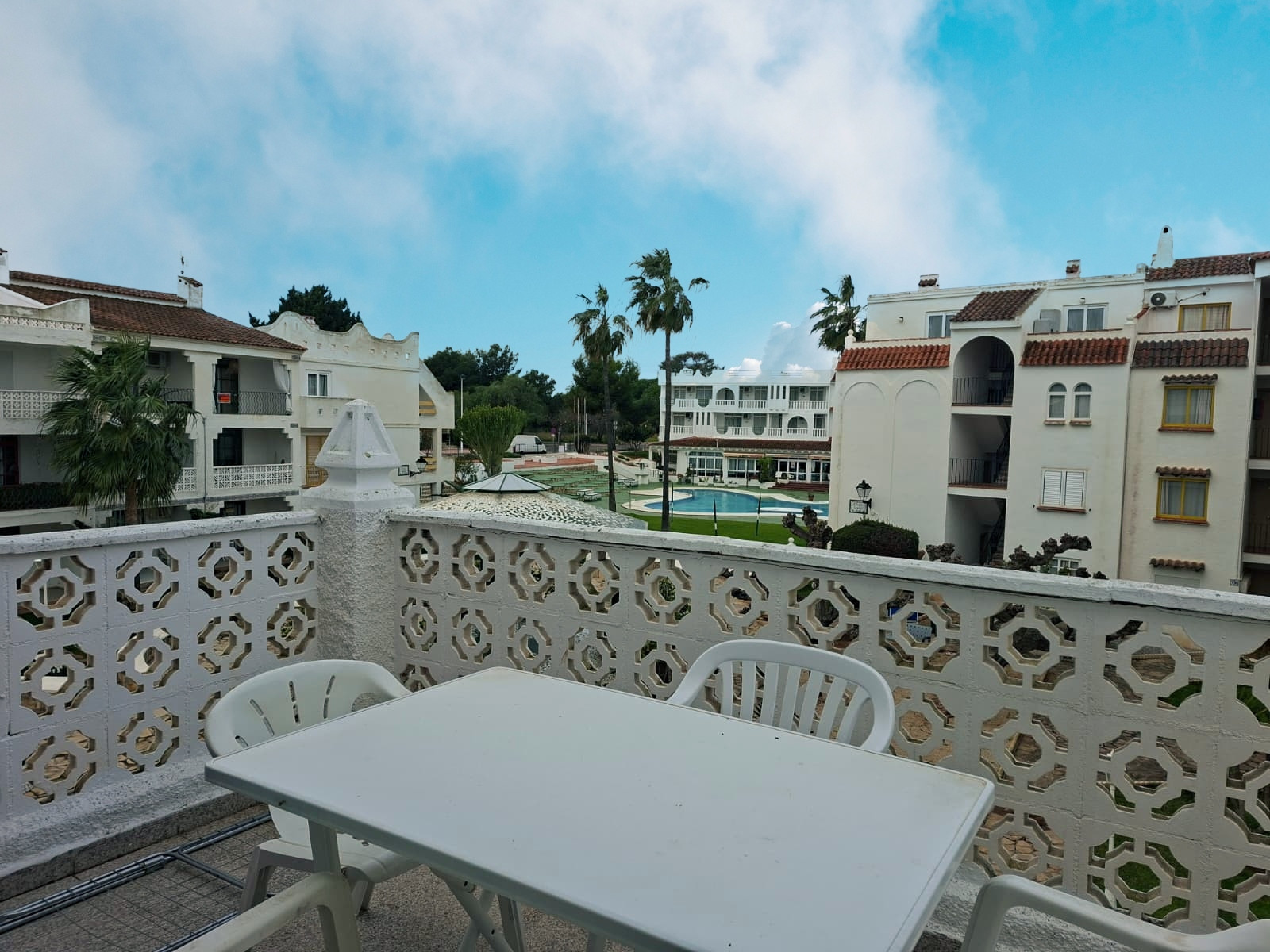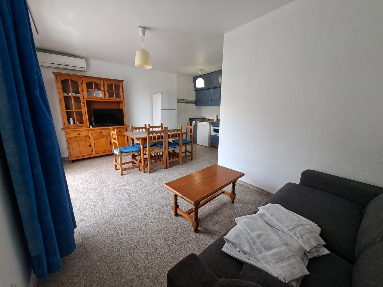 Dispone de terraza, acceso internet (wifi), calefacción bomba de calor, aire acondicionado solo en salón, piscina comunitaria+infantil, 1 ventilador, 1 Televisor.