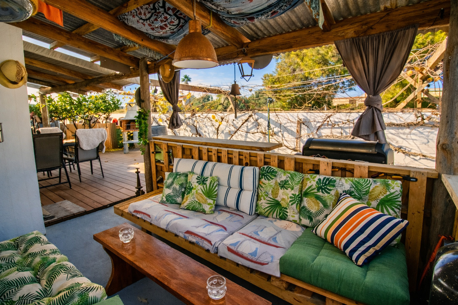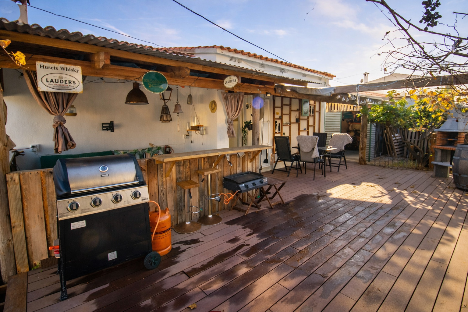 Por delante es discreta y tranquila, como tantas casas mediterráneas. Pero al recorrerla descubres su verdadero punto fuerte: un patio trasero amplio y lleno de vida, pensado para disfrutar sin prisas 😌. Aquí te esperan la zona chill out, la mesa para largas comidas y la barbacoa 🔥 que acaba siendo protagonista de muchas noches.