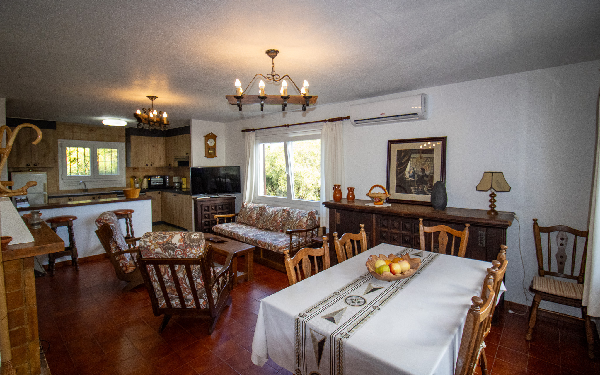 Die Unterkunft verfügt über eine Terrasse, eine Waschmaschine, ein Internetanschluss (WLAN), eine Wärmepumpe, eine Klimaanlage nur im Wohnzimmer, ein Privatpool, einen Parkplatz im Freien (3 Stellplätze) auf dem Grundstück, einen Ventilatoren, 1 Fernseher.