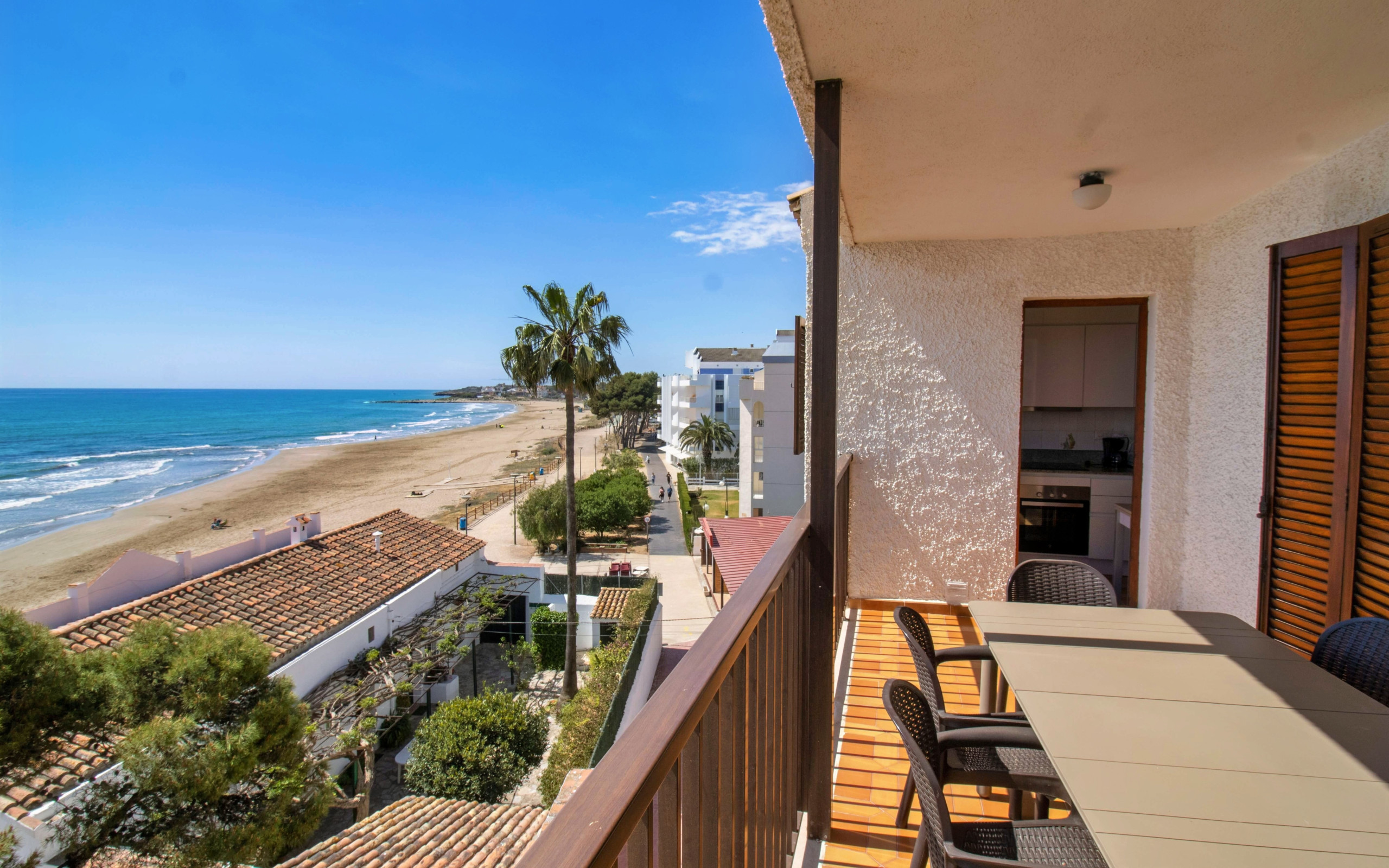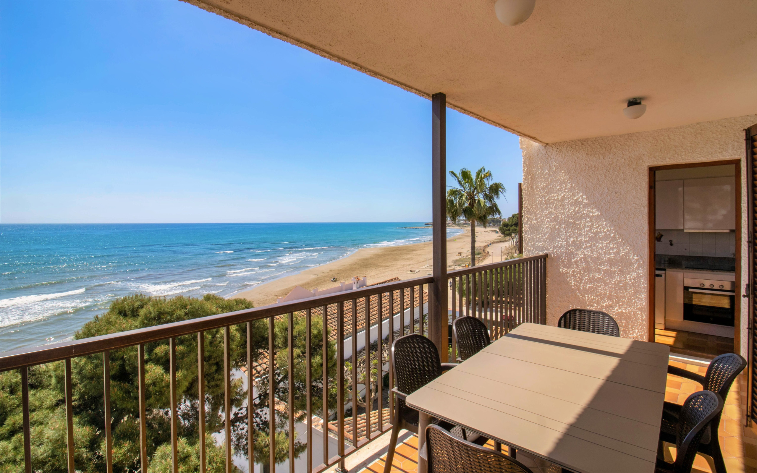 Schließlich haben wir Zugang zu einer Terrasse mit herrlichem Blick auf das Mittelmeer, sowie die Promenade und den Strand. Es ist sehr geräumig und perfekt für 6 Personen.