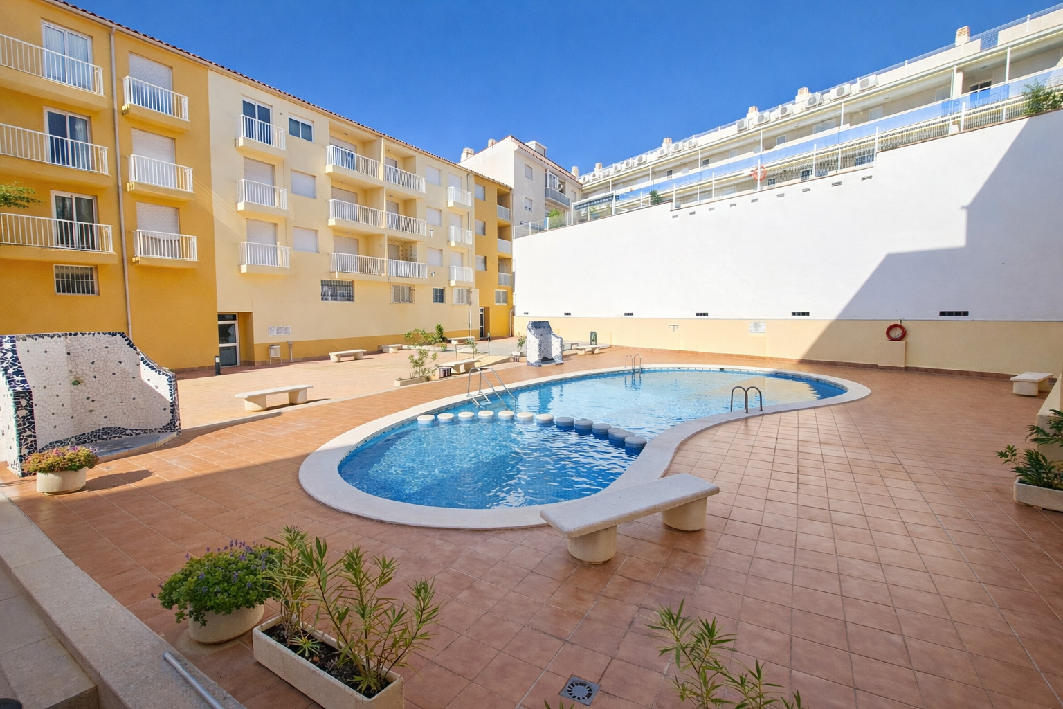 Die Ferienwohnung in Alcoceber verfügt über 1 Schlafzimmer und hat eine Kapazität für 4 Person(en). Unterkunft verfügt über 40 m². Die Unterkunft befindet sich 10 m vom "Imar" entfernt, 30 m vom "Dora", 50 m von der Stadt "centro urbano Alcossebre", 60 m vom "Meson Ximo", 140 m vom zum Sandstrand "playa Cargador", 150 m vom Supermarkt "Spar".Die Unterkunft verfügt über eine Terrasse, eine Waschmaschine, ein Internetanschluss (WLAN), eine Wärmepumpe, eine Klimaanlage nur im Wohnzimmer, einen klimatisierter Gemeinschaftspool, eine Garage auf dem Grundstück, 1 Ventilator, 1 Fernseher.Die Offene Küche mit Ceranfeld ist ausgestattet in einen Kühlschrank, eine Mikrowelle, ein Backofen, Gefrierschrank, Geschirr/Besteck, Kochutensilien, eine Kaffeemaschine und einen Toaster.5 Bewertungen