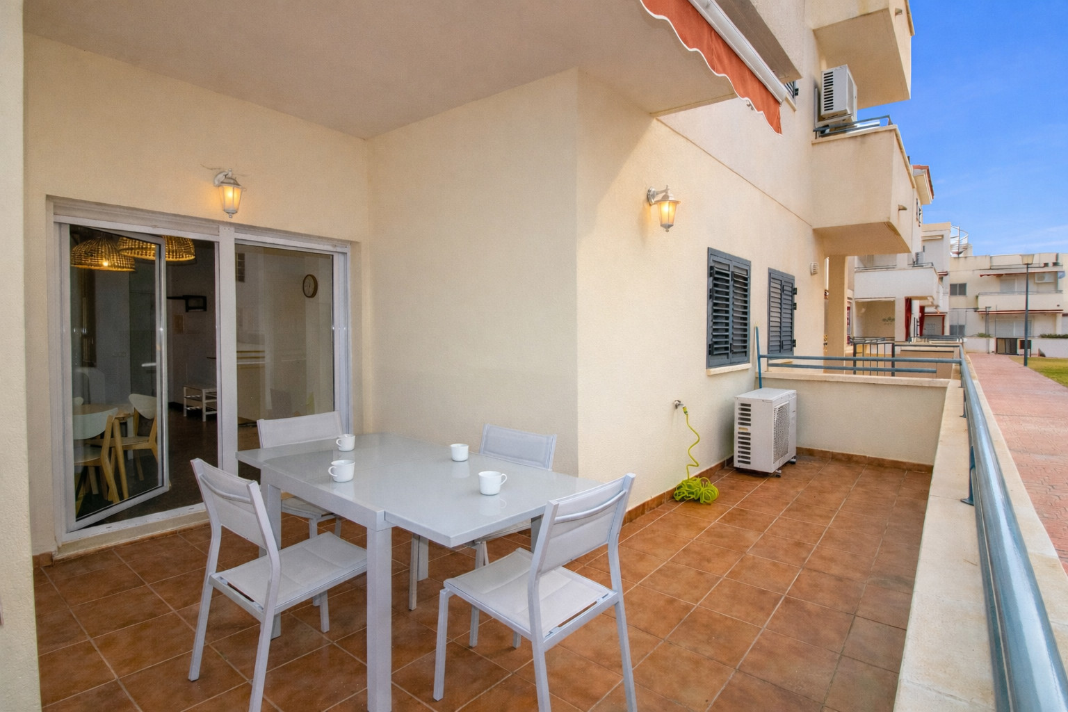 Erdgeschosswohnung mit Terrasse zur Miete in Las Arenas, Alcoceber, ideal für Familien mit Kindern. Die Urbanisation verfügt über 2 Paddle-Plätze, 2 Gemeinschaftspools + 2 Kinderbecken, 2 Spielplätze und große Gartenbereiche, wo Sie sich entspannen und sonnen können.