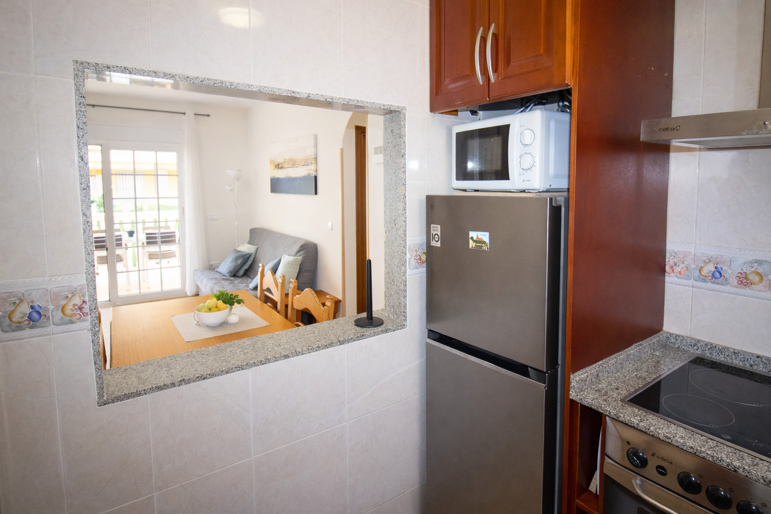 Die offene Küche ist komplett ausgestattet mit Cerankochfeld, Kühlschrank, Mikrowelle, Backofen, Gefrierschrank und allem, was Sie brauchen, um köstliche Mahlzeiten zu Hause zuzubereiten, einschließlich Geschirr/Besteck, Kaffeemaschine und Toaster.