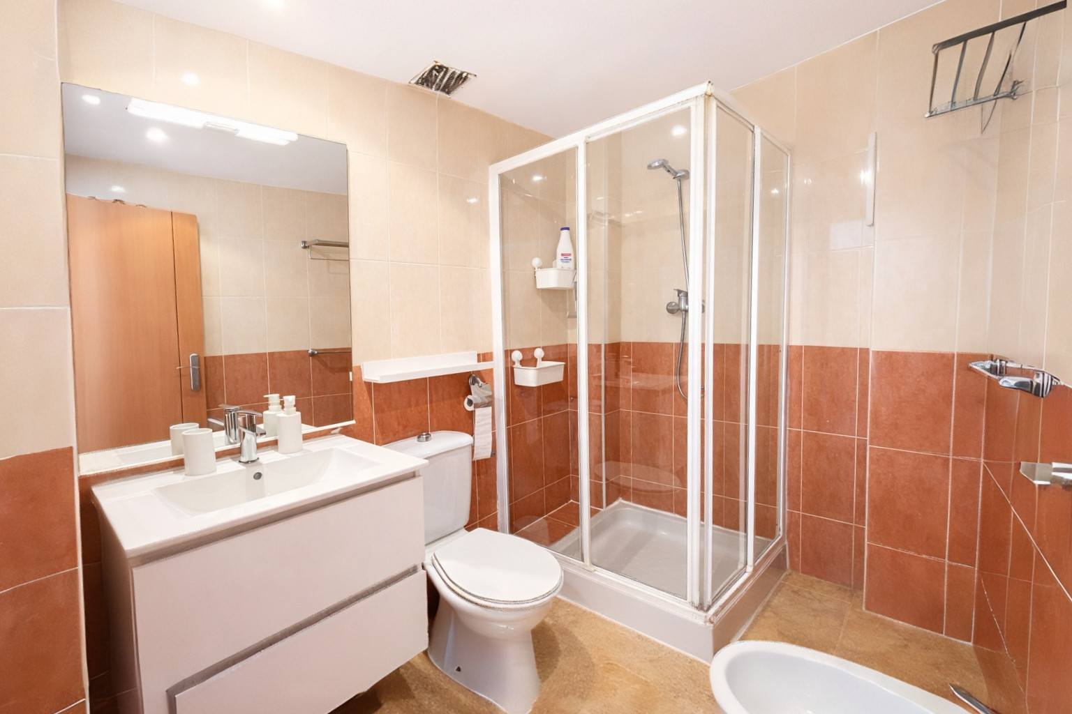 Die Wohnung, die über WiFi und einen privaten Parkplatz (mit direktem Zugang vom Aufzug) verfügt, ist wie folgt aufgeteilt: