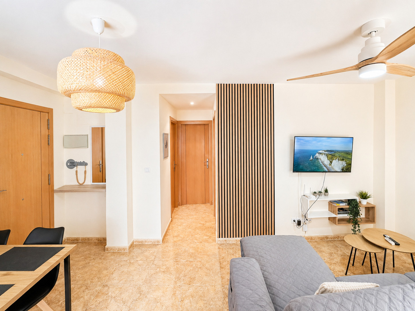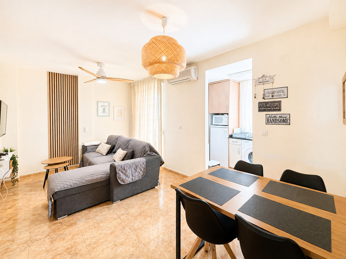 Die Wohnung ist zweckmäßig eingerichtet und nicht zu klein. Die Betten sind gemütlich. Wir waren 4 Wochen dort und haben uns wohlgefühlt. Die Agentur war immer immer ansprechbar und für uns da, sehr freundlich. Die Lage ist für Hundebesitzer toll. Die einsamen Buchten und das Naturschutzgebiet gleich nebenan. Zur anderen Seite lockt der Ortskern.