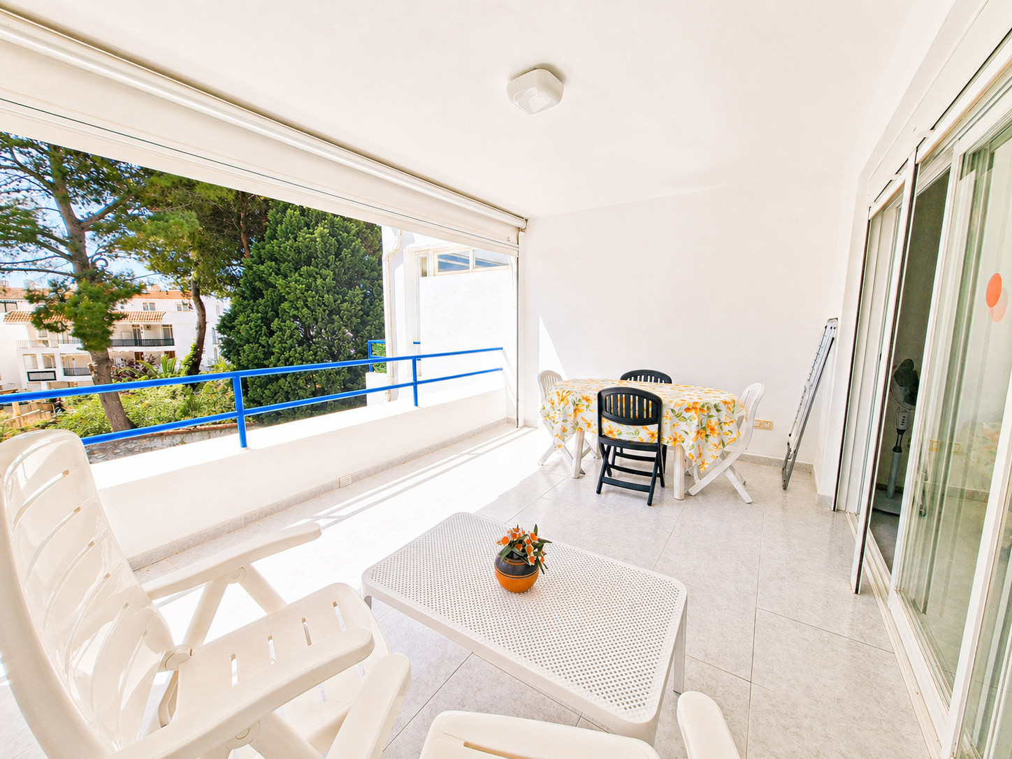 Die Wohnung befindet sich in der Urbanisation Los Caballos II (neben der städtischen Turnhalle und dem Fußballplatz 7), hat Klimaanlage und Parkplatz.