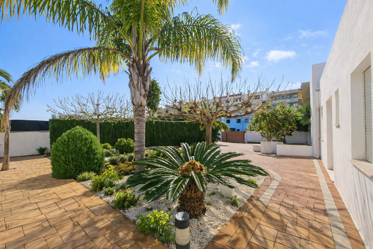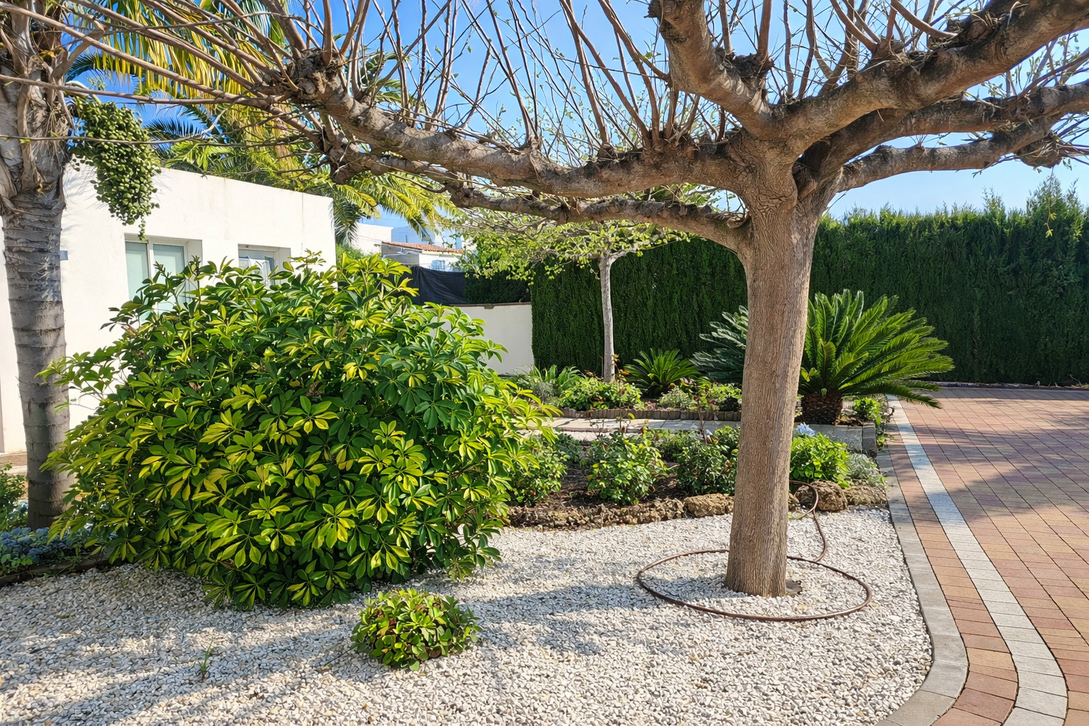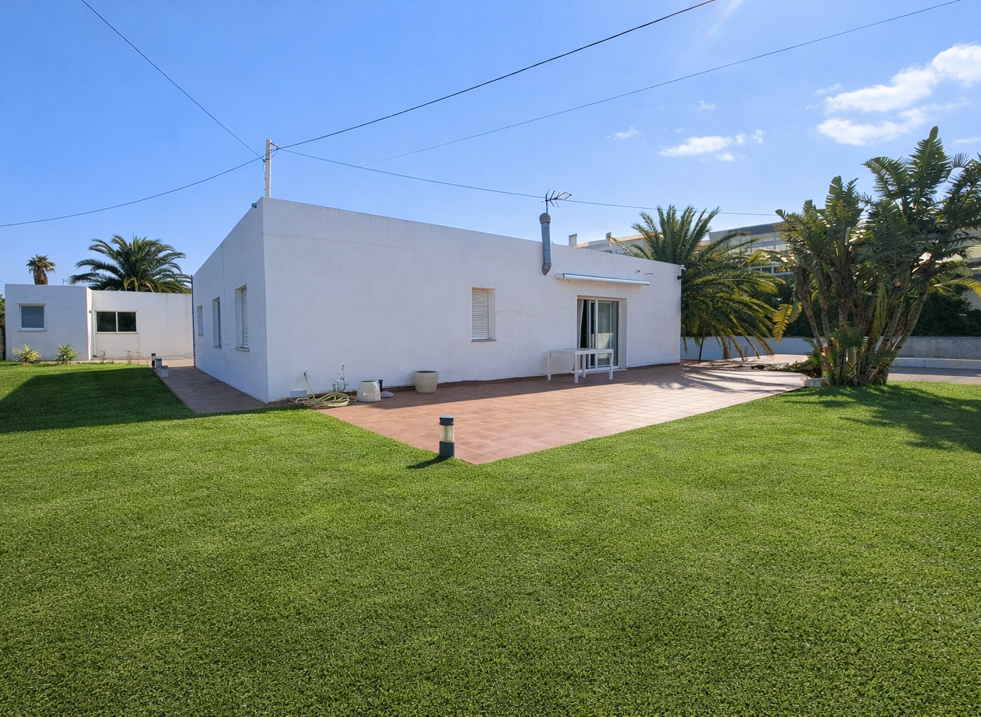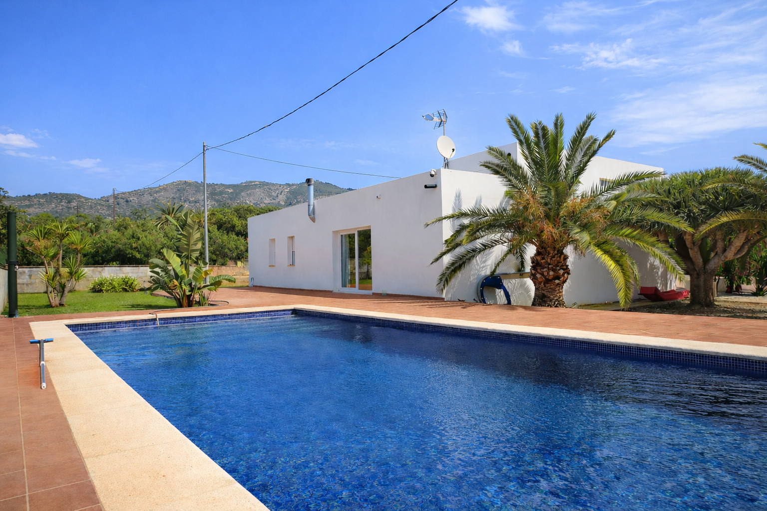 The exterior of the house is a spacious and private space. It has a private swimming pool (with weekly maintenance included) and a large garden surrounding the house. In addition, there is a hammock area for sunbathing. And finally, a barbecue equipped to have lunch and dinner with the family at any time of the year.