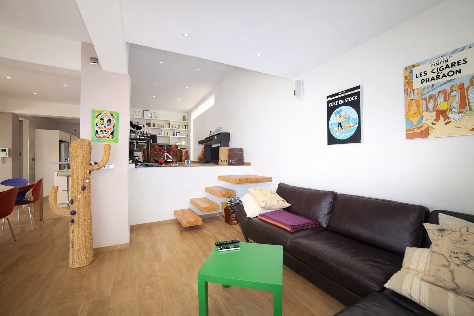 On the upper floor, we find the 3 bedrooms.