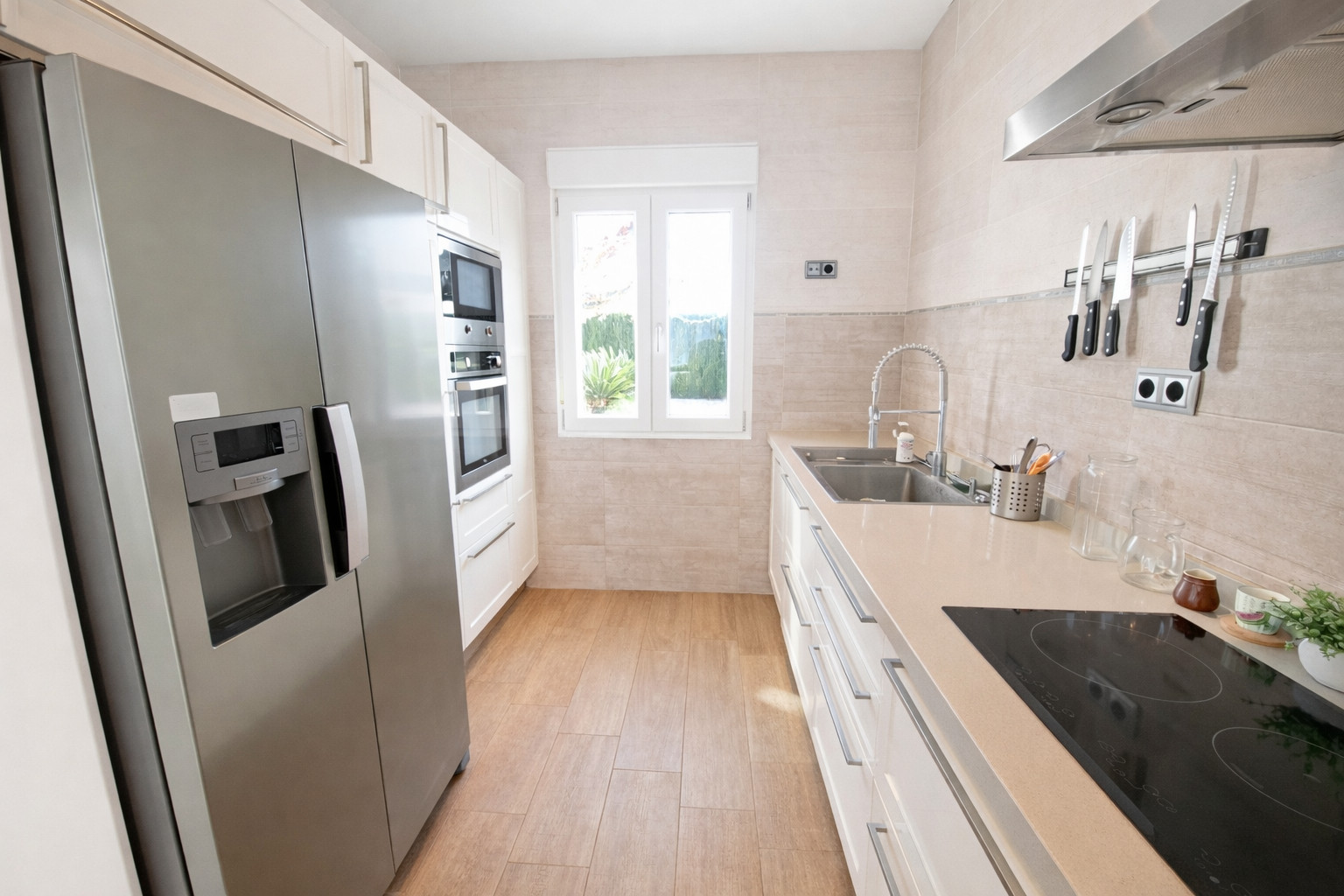 The independent kitchen is excellently equipped, with ceramic hob, oven, microwave, dishwasher, toaster, coffee machine, etc.... Through it we reach a bright dining room, with large windows that make it a perfect place to eat in summer or winter.