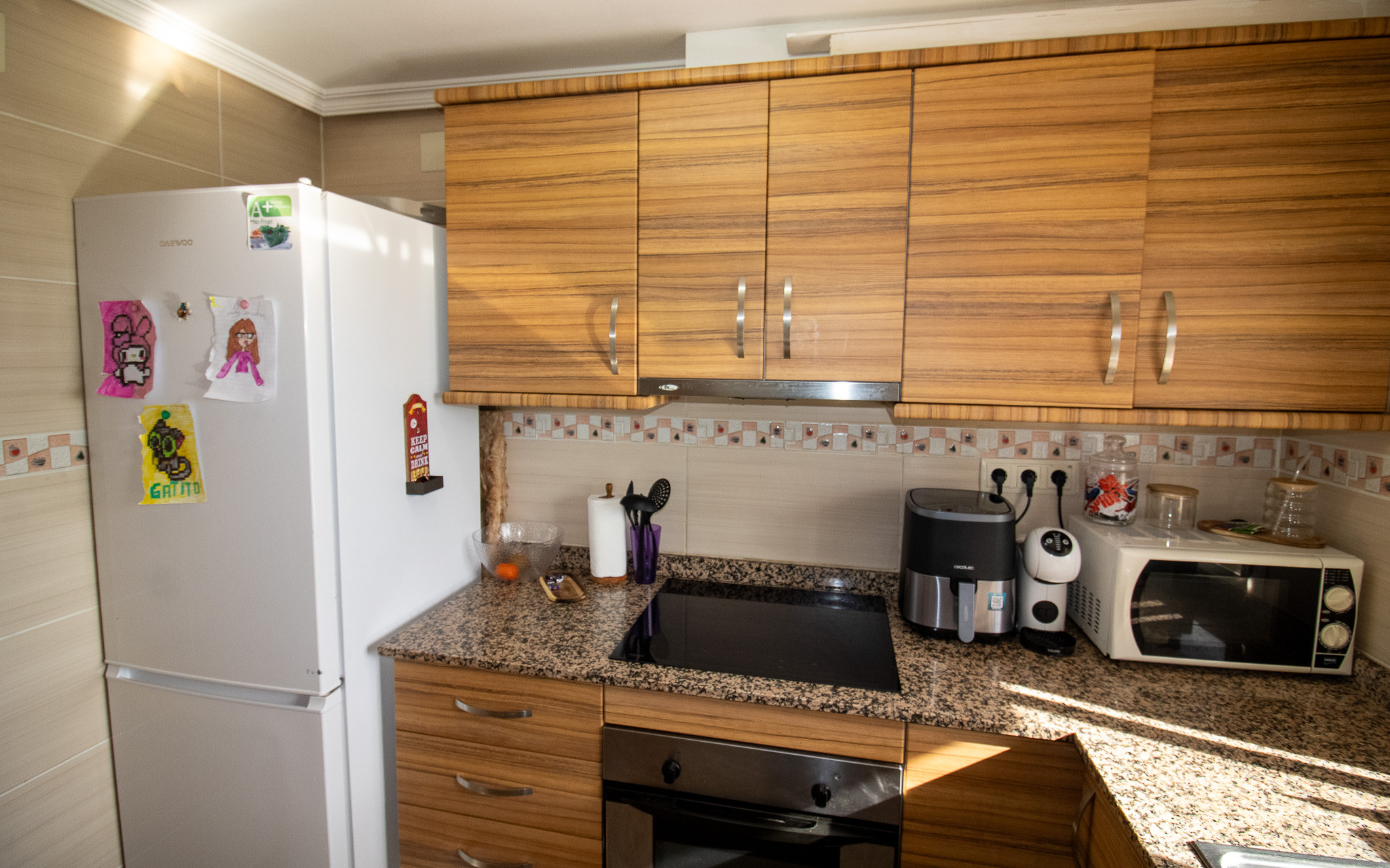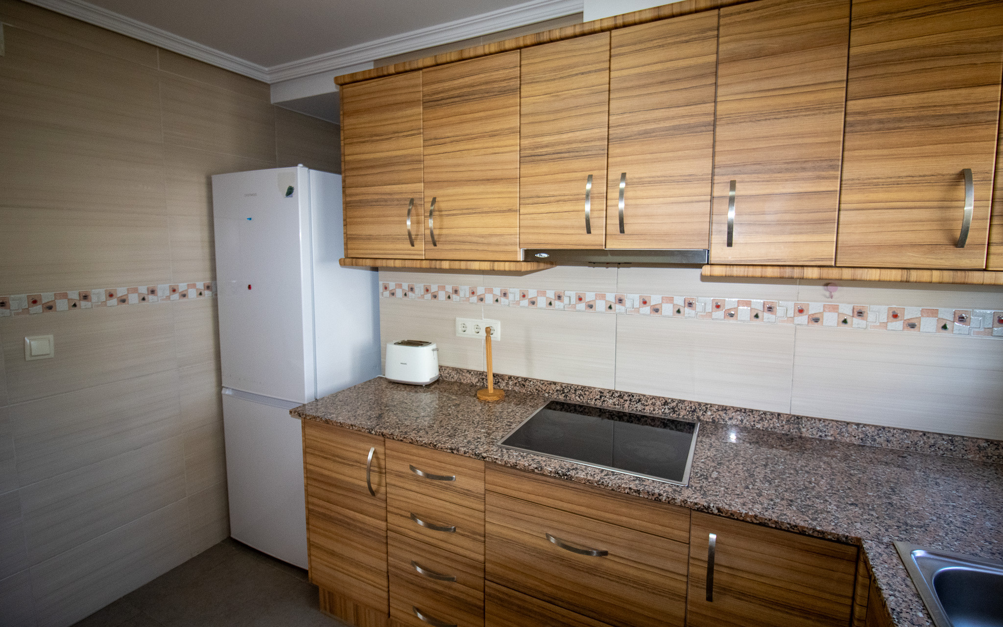In the hotplate of glass ceramics independent kitchen, refrigerator, microwave, oven, freezer, dishes/cutlery, kitchen utensils, coffee machine and toaster are provided.