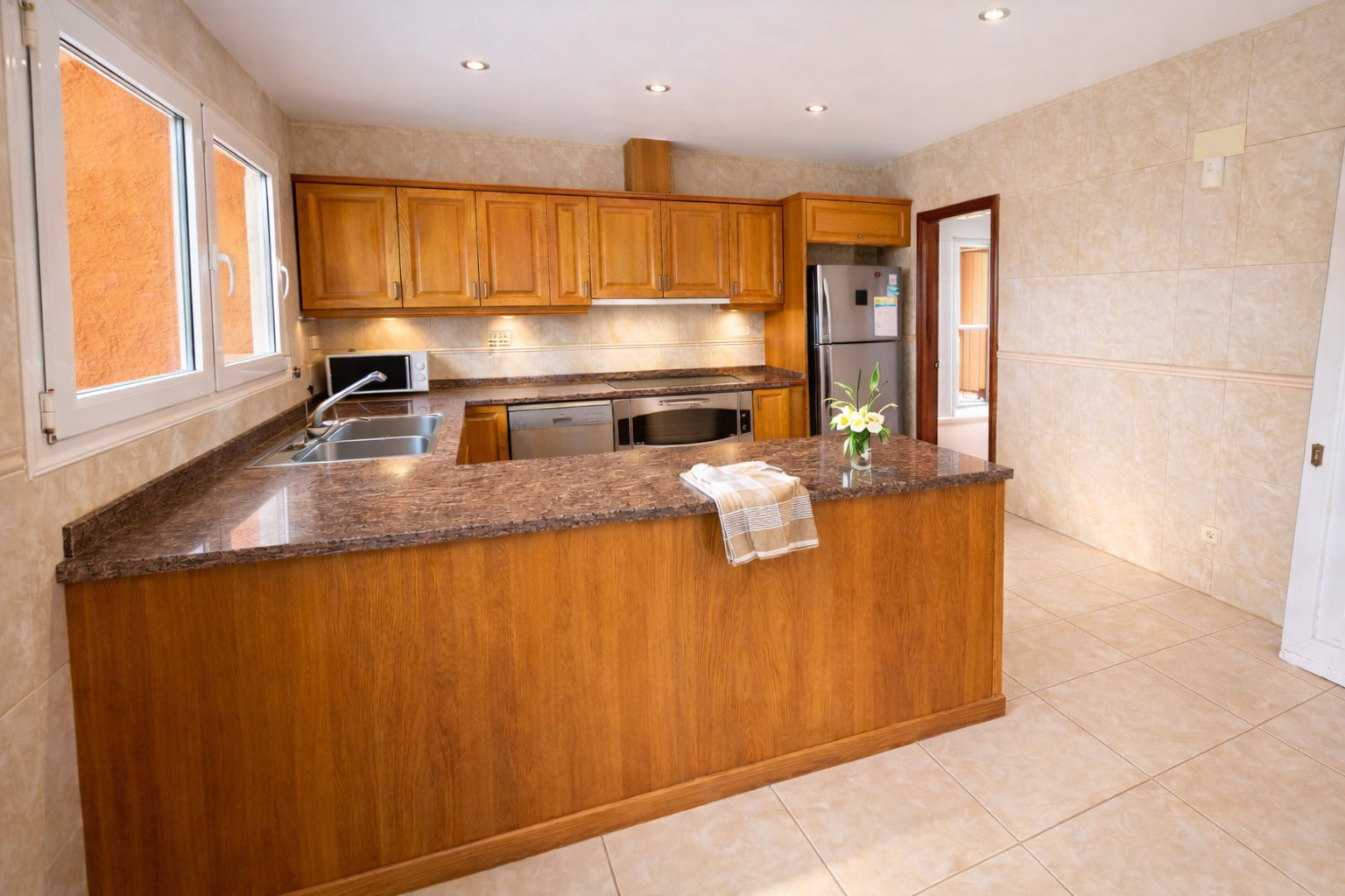 We continue with the independent kitchen, very well equipped (dishwasher, ceramic hob, oven, microwave...).