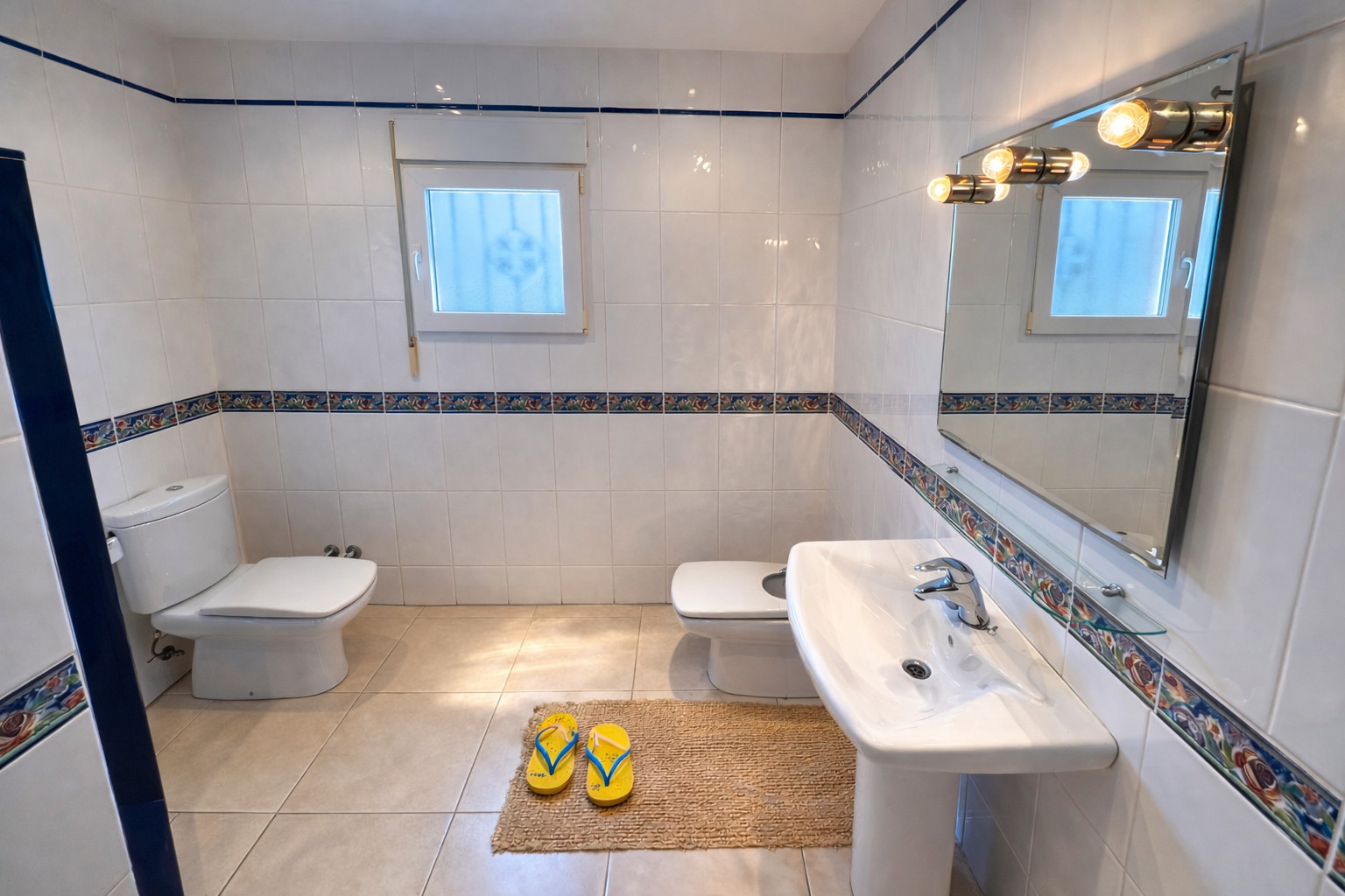 And finally, the two bedrooms on the upper floor, as well as the bathroom with bathtub. The first bedroom has a double bed and the second bedroom has two single beds.