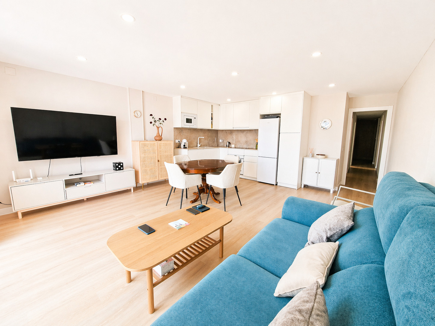 Le salon-salle à manger est spacieux et dispose d'un canapé-lit pour 1 personne, ainsi que d'une télévision.