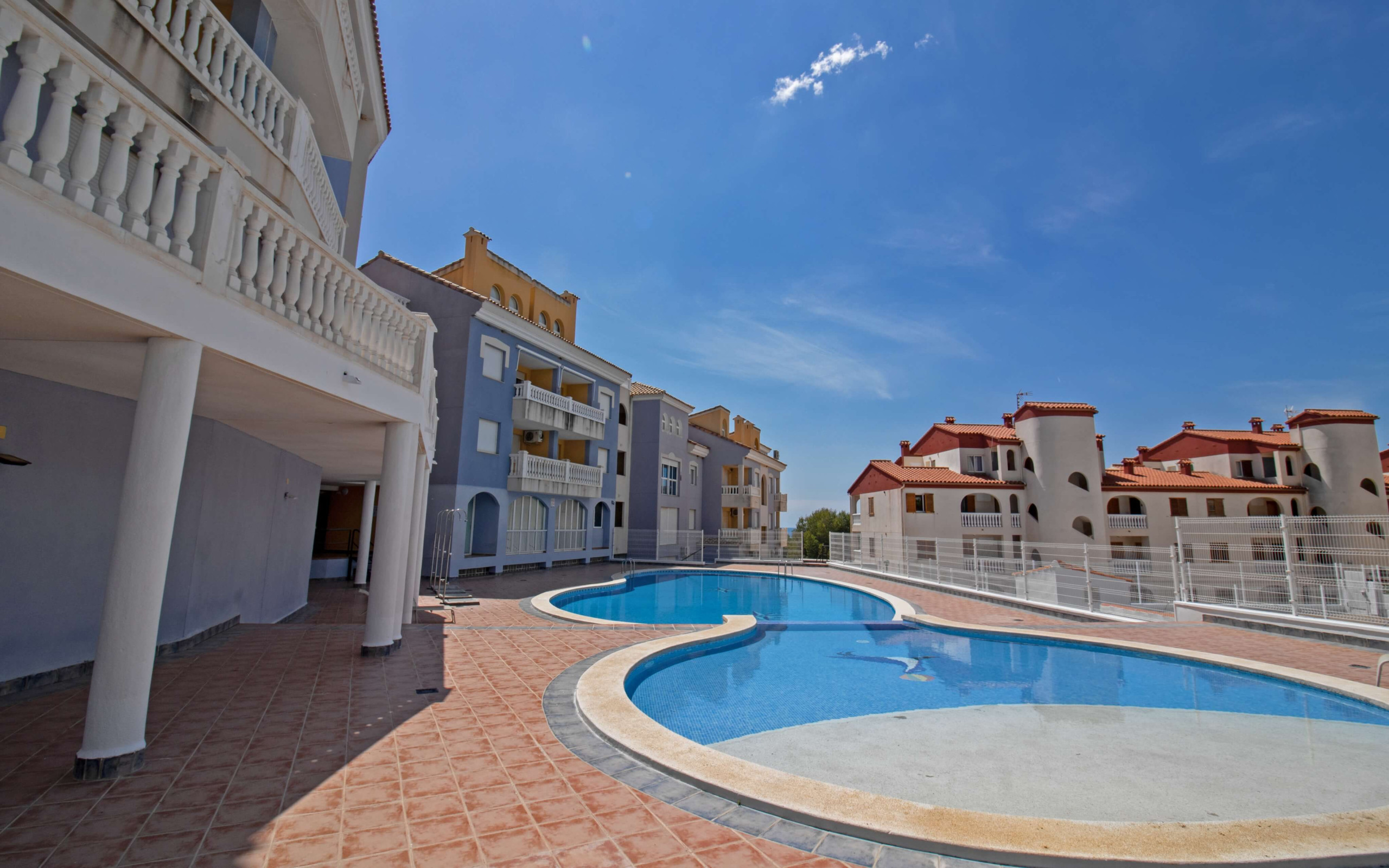 Appartement à Alcocebre / Alcossebre qui possède 2 chambre(s) et Capacité pour 4 personnes. Logement de 55 m². La location se trouve à 300 m du parc naturel "Sierra Irta", 890 m de la plage de sable "playa Las Fuentes", 1 km du supermarché "Spar las Fuentes".Elle dispose de terrasse, lave-linge, accès internet (wifi), chauffage pompe à chaleur, climatisation dans le salon, piscine collective+infantile, garage même bâtiment.La cuisine américaine, à vitrocéramique, est équipée avec réfrigérateur, micro-ondes, congélateur, vaisselle/couverts, ustensiles/cuisine, cafetière et grille pain.5 avis
