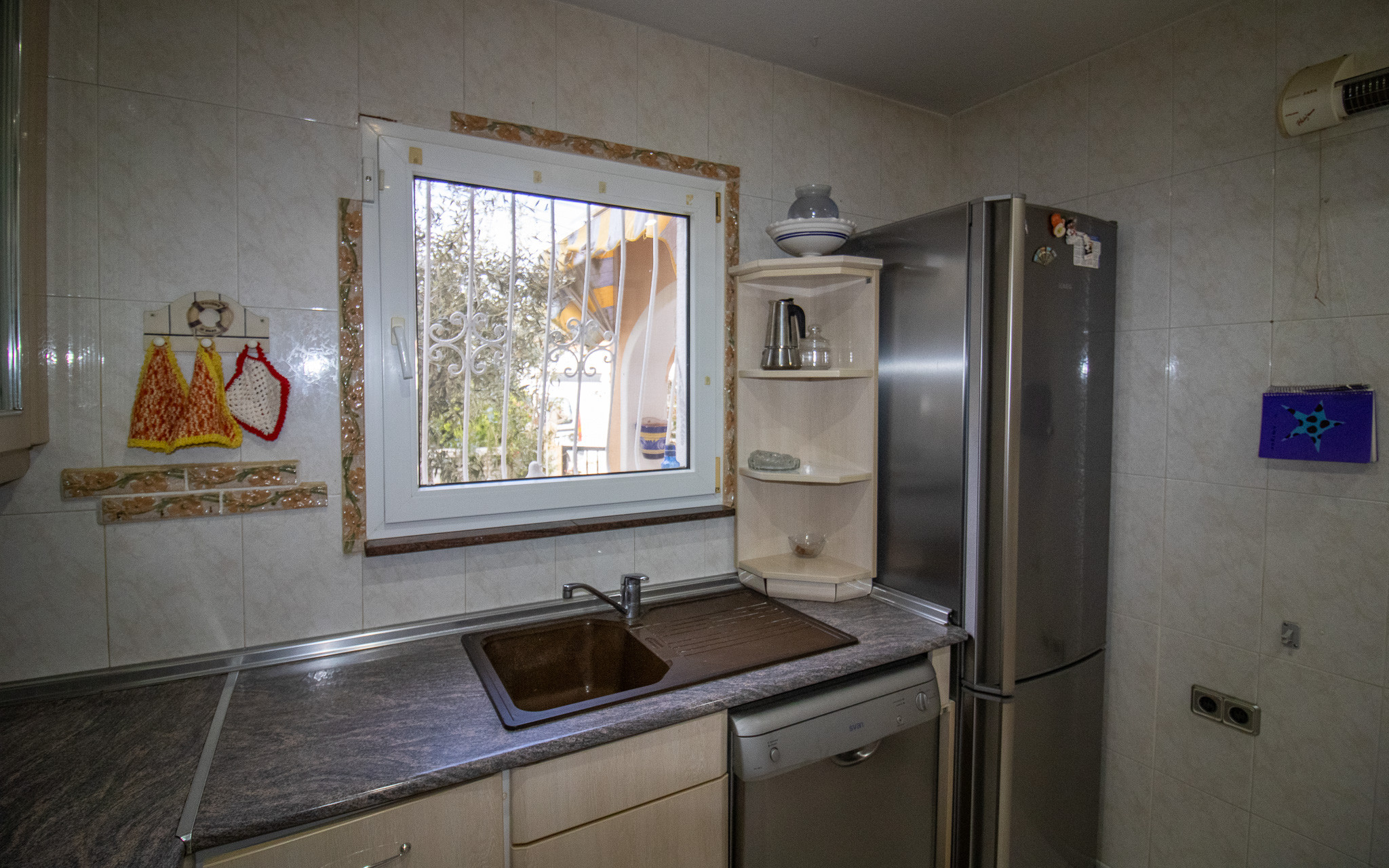 Villa à Alcocebre / Alcossebre qui possède 2 chambre(s) et Capacité pour 5 personnes. Logement de 140 m². La location se trouve à 350 m du supermarché "Charter Tropicana", 350 m du restaurant "Tropicana", 350 m du restaurant "Can Roig", 390 m de la plage de sable "playa Tropicana", 640 m du restaurant "Chiringuito Serradal", 1 km de la plage de sable "playa del Moro", 2 km de la ville "centro Alcossebre".Elle dispose de jardin, terrasse, chauffage pompe à chaleur, climatisation dans tout le logement, piscine collective, garage même bâtiment, 1 Télévision.La cuisine indépendante, à vitrocéramique, est équipée avec réfrigérateur, micro-ondes, four, congélateur, lave-vaisselle, vaisselle/couverts, ustensiles/cuisine, cafetière et grille pain.